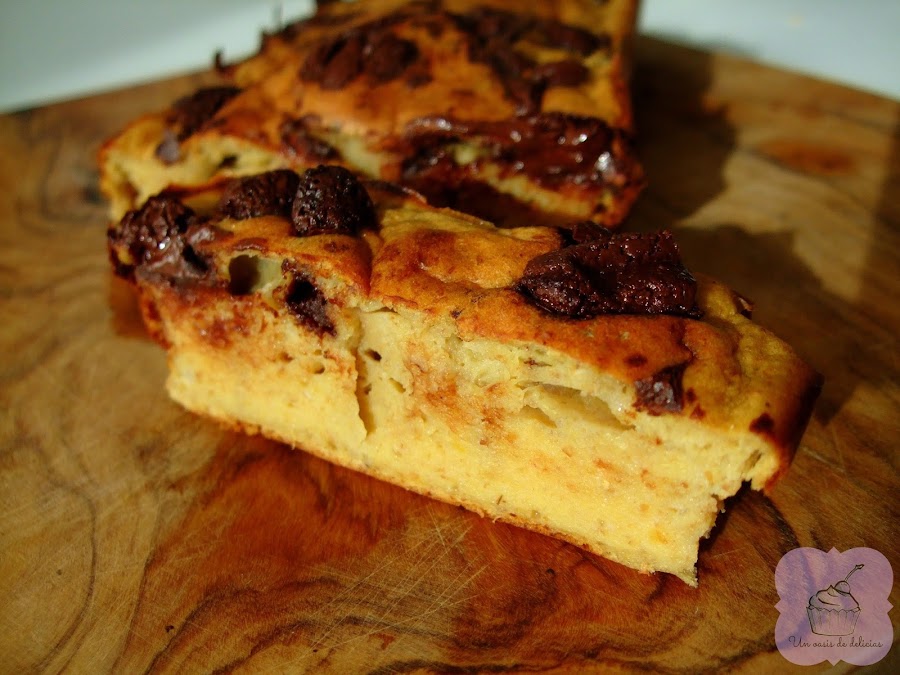 7° Partemos el chocolate en trocitos y los repartimos por la mezcla.