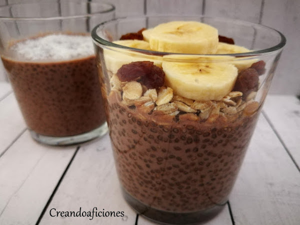 Si hacemos los de chocolate, ponemos la bebida de almendras, el cacao en polvo y removemos hasta que no tenga grumos, echamos las semillas de chía removemos otra vez y volvemos a remover a los 5 minutos, tapamos con film y guardamos en la nevera.