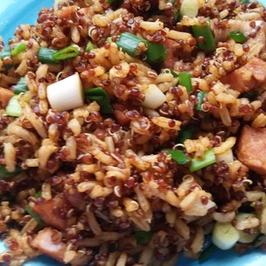 Rica receta donde se combina la carne de cerdo, con la quínoa y el arroz. Ideal como una opción para un día en el almuerzo.