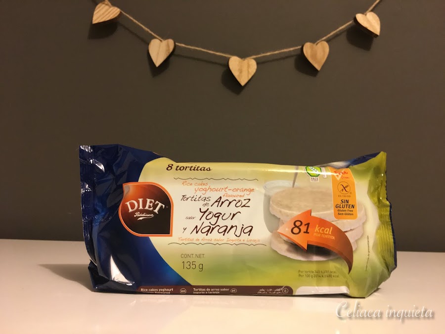 Tortitas de arroz integral cubiertas de yogur y naranja. Sin colorantes, sin conservantes y sin grasas hidrogenadas.