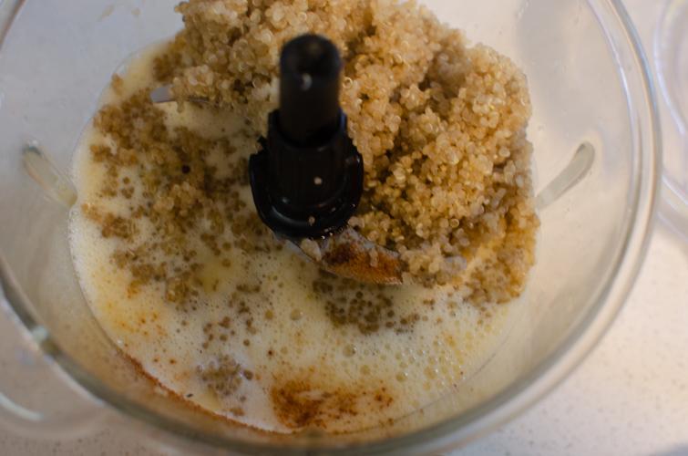 Una vez cocida y fría, agregar la quinoa junto con los huevo y la leche en la procesadora. Mezclar bien.