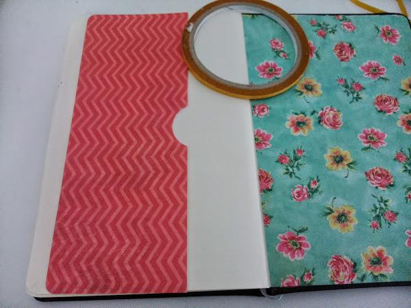 Y en la página de al lado hice otro bolsillo de más o menos la mitad de hoja y de largo el mismo de la libreta obviamente; y con ayuda de la perforadora de círculos hice medio círculo para que fuera más fácil coger los papeles o tarjetas.