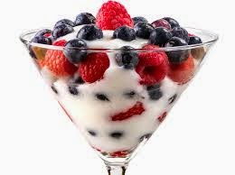 2. Yogurt griego con frambuesas o moras azúles. Esta es una carga de fibra y proteína sin grasa con dulzura natural y el sabor inigualable de una de mis frutas favoritas: Las moras.