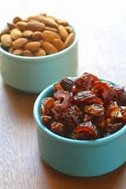 3. Almendras y dátiles. 15 almendras mezcladas con dátiles son un super snack que te ayudará a sentirte bien por un par de horas cuando menos.