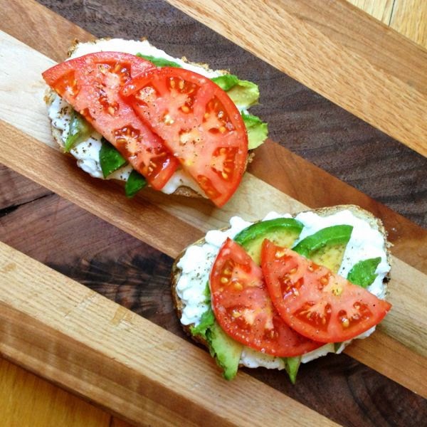 1. Pan tostado integral con queso crema, jitomate y aguacate.