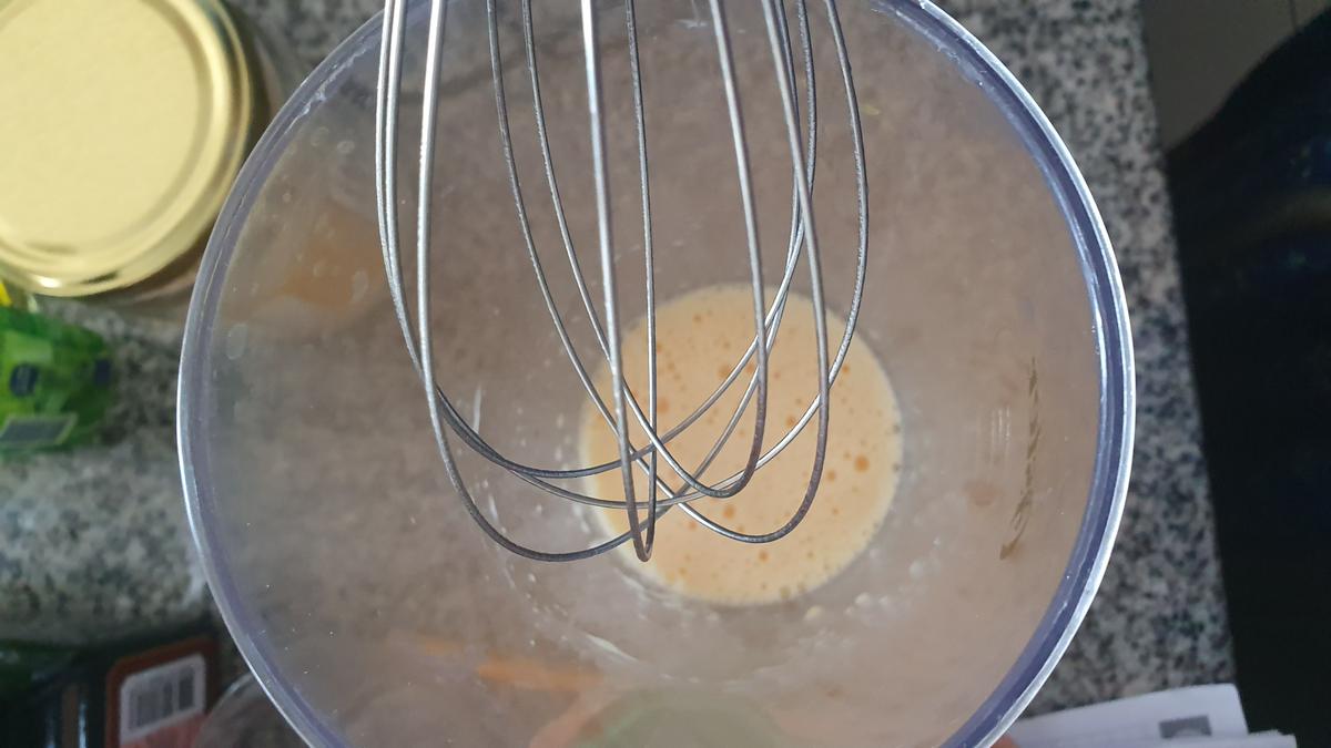 Mezclar suavemente los huevos con el aceite de coco y el jugo de limón.