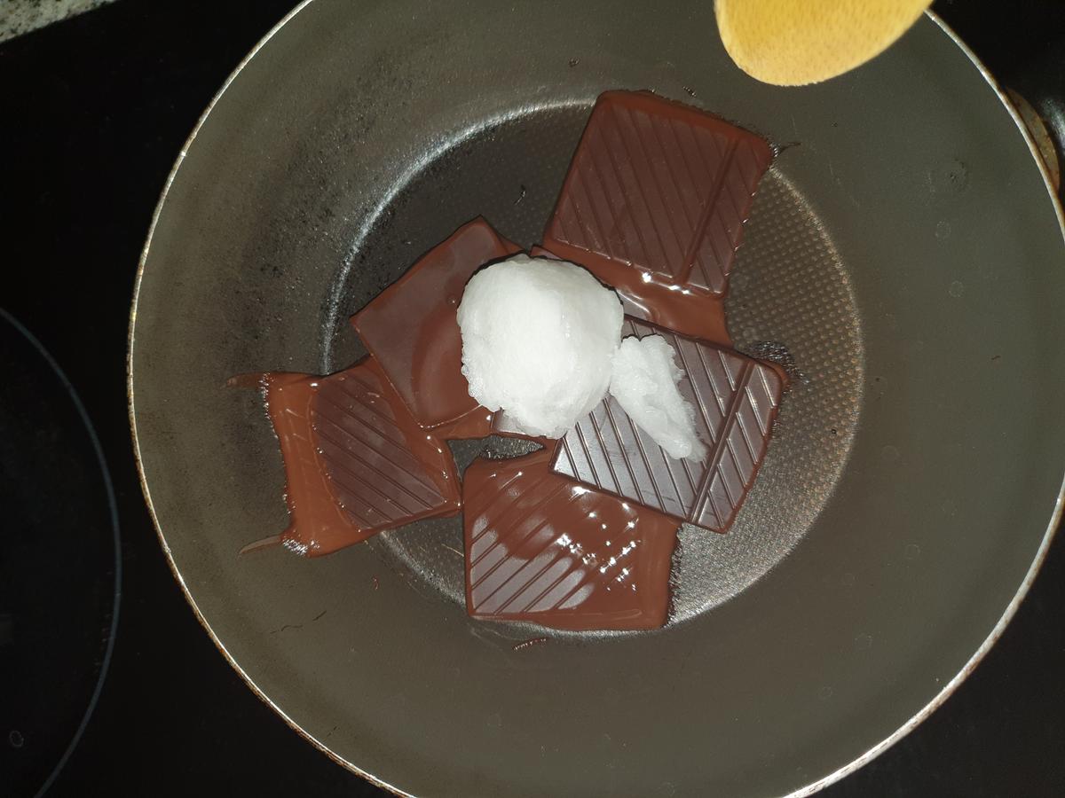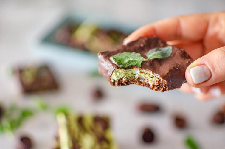 El último paso será derretir el chocolate junto con el aceite de coco. Una vez derretido, agregar la esencia de menta. Bañar o decorar las barritas de la forma que quieran.