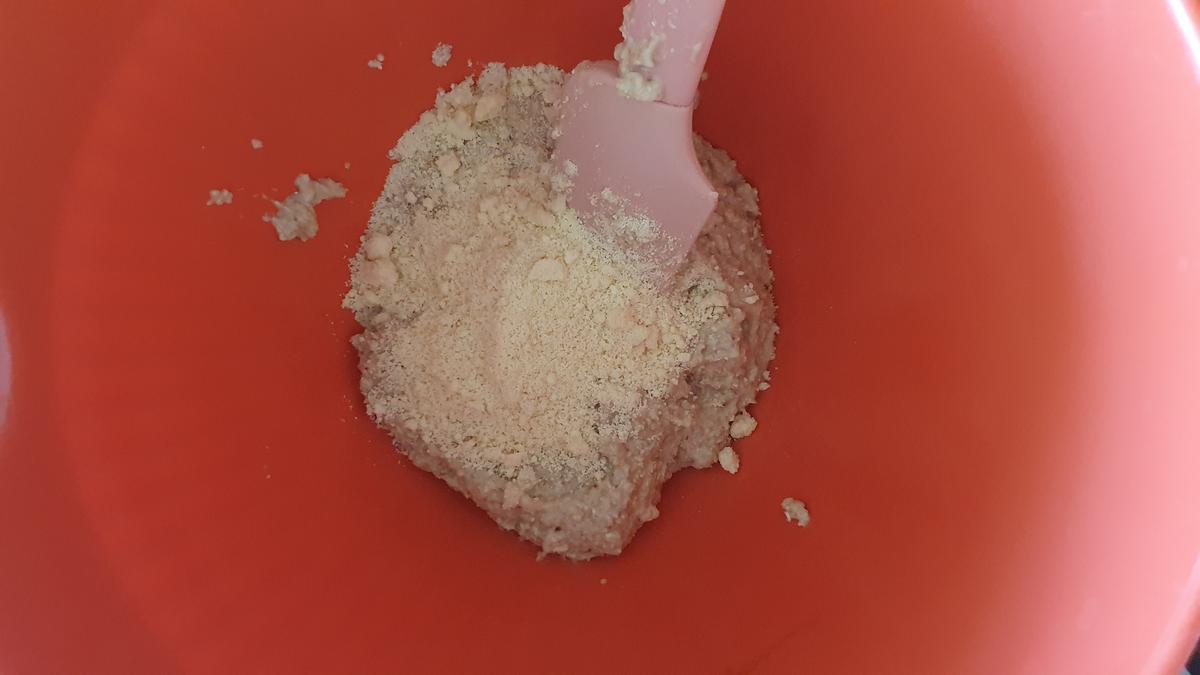 1.Remojar los dátiles durante una hora. Poner todos los ingredientes de la primera capa (avena, coco, harina de coco, maple o miel) en la procesadora o licuadora. Procesar hasta