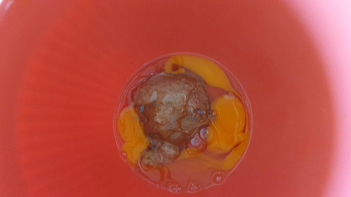 1.Pre calentar el horno. Batir los huevos con la mantequilla de frutos secos. Idealmente utilizar batidos eléctrico. Batir por unos segundos hasta que este todo incorporado.