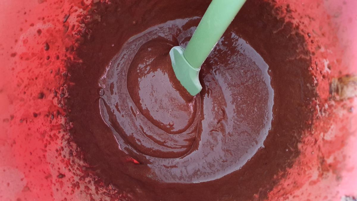 Agregar a la mezcla, cacao en polvo, harina, polvos de hornear, endulzante, stevia, leche y vainilla. Batir hasta que este todo bien mezclado e incorporado.