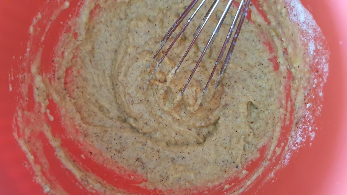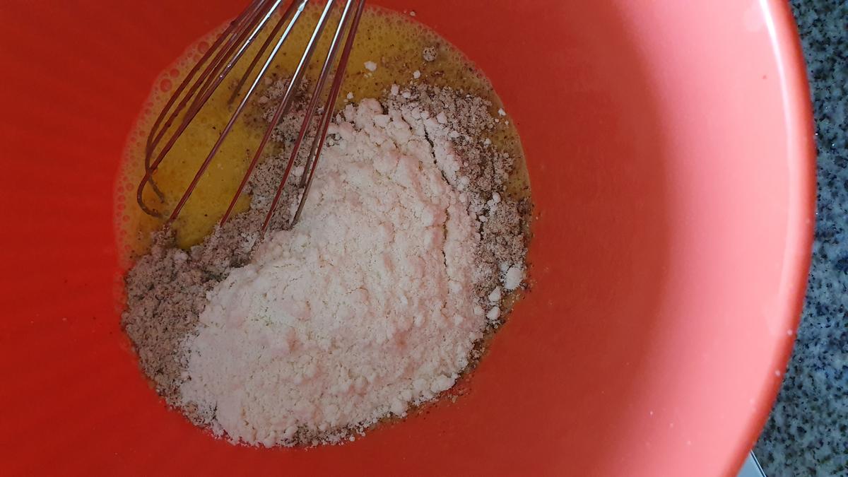 Agregar el resto de los ingredientes, harinas, polvos, vinagre, aceite, leche y sal.