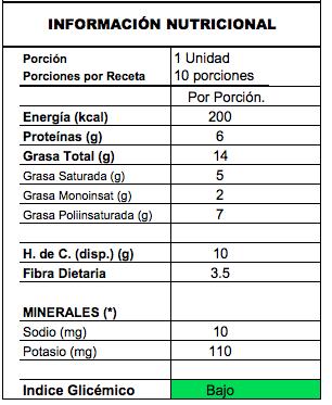 Si bien esta no es una receta baja en calorías si es una receta llena de nutrientes para nuestra salud. De todas formas, tenemos que moderar su consumo. Esta es una buena opción para la colación de media tarde para de vez en cuando. Sobre todo cuando nos sentimos desesperados por consumir algo dulce en horas de la tarde cuando la Serotonina alcanza niveles muy bajos y le dice a nuestro cerebro que NECESITA azúcar. A esta hora es buena idea agregar este tipo de recetas, que eleven el nivel de Serotonina (hormona de la felicidad) pero que no estimulen enormemente la Insulina.