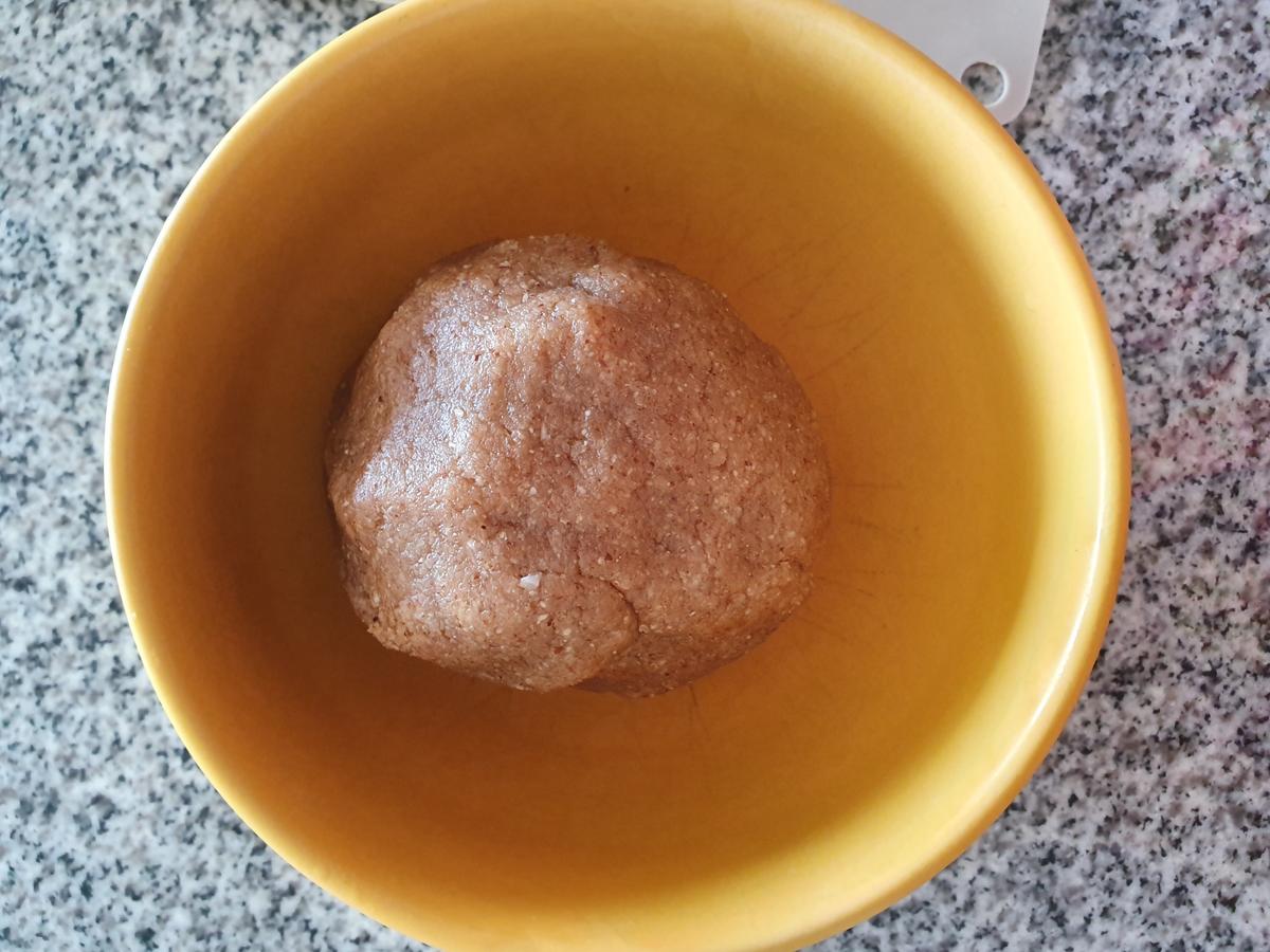 Juntar bien la masa con las manos y formar una bola. Poner a refrigerar esta masa por 30 minutos.