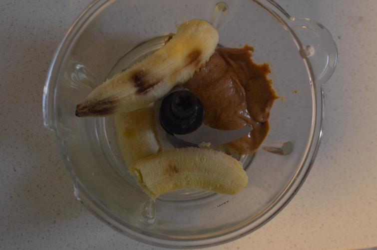 Poner los plátanos junto con la mantequilla de almendras en la procesadora. Procesar hasta que quede una pasta.