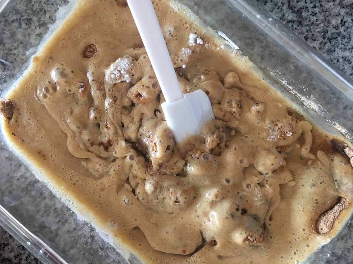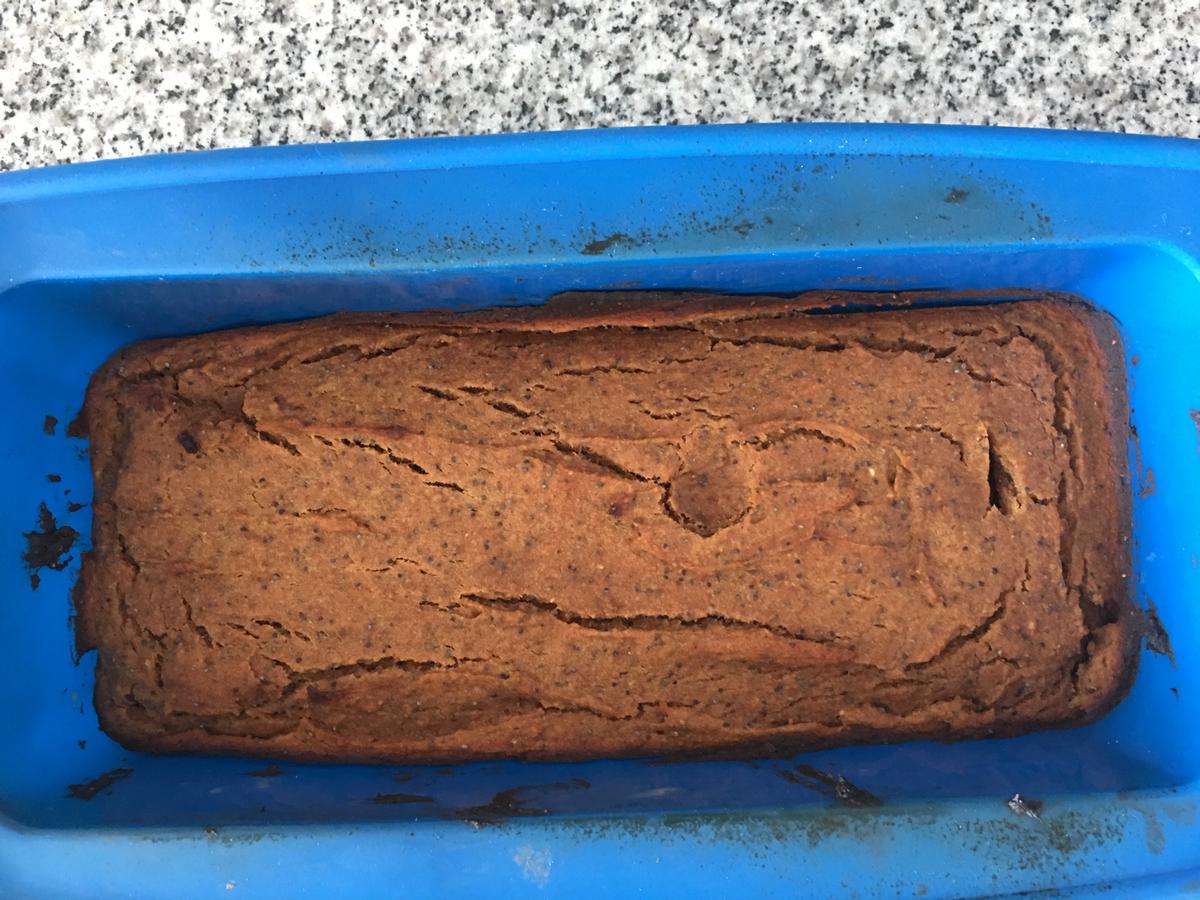 Mezclar muy bien hasta que quede sin grumos. Agregar la mezcla al molde que van a usar. Ideal molde rectangular mediano de silicona. Esparcir bien la mezcla y hornear 30 minutos a 180ºC.