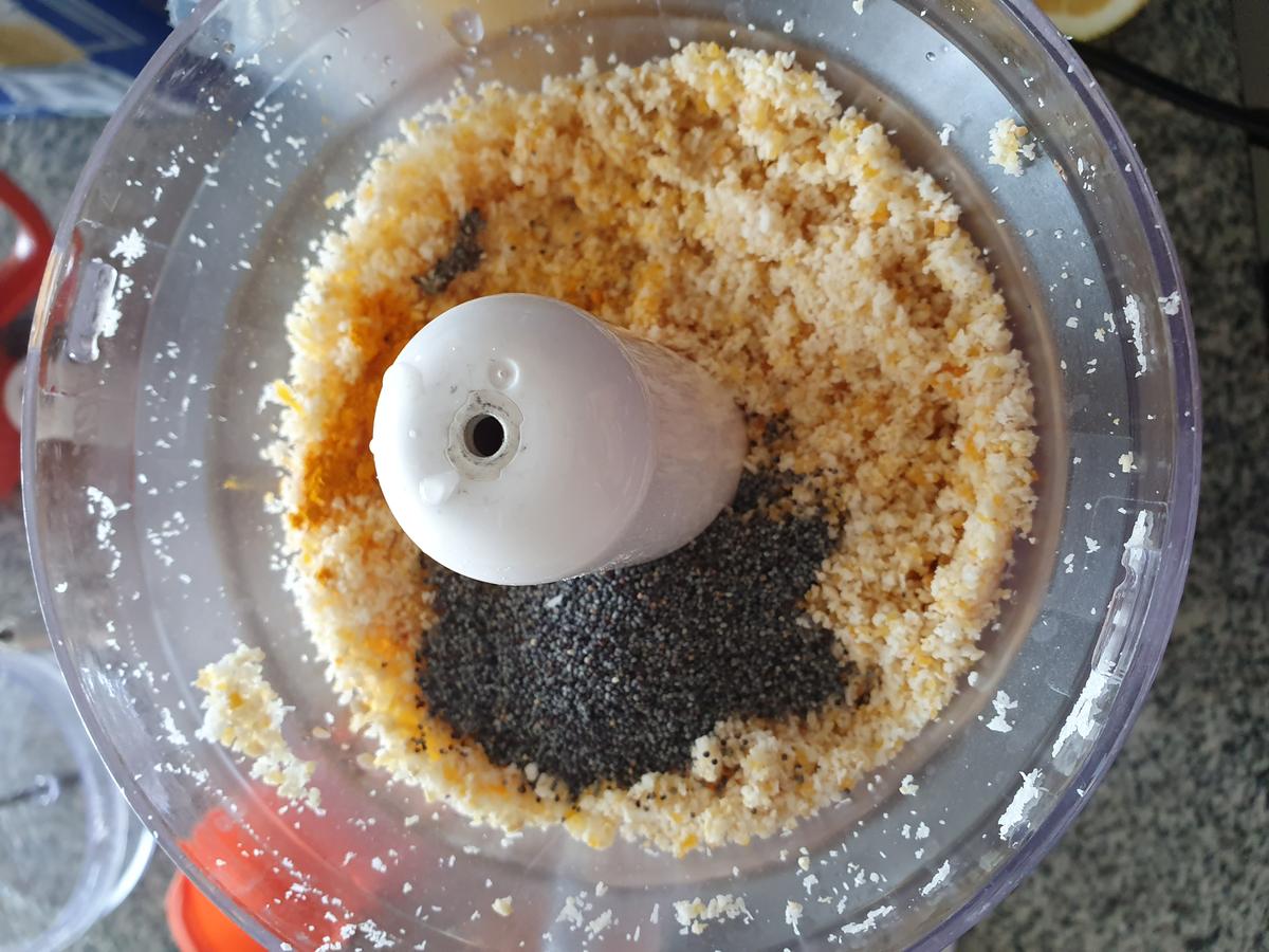 Exprimir el limón y agregar el jugo junto con las amapolas, cúrcuma, agave y stevia. Procesar hasta que este todo bien mezclado.