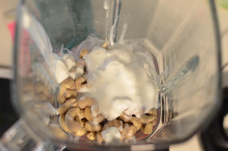 1 1/2 Taza Castañas de Caju naturales1 Taza Crema de coco (Solo usar la parte solida que viene en la lata)