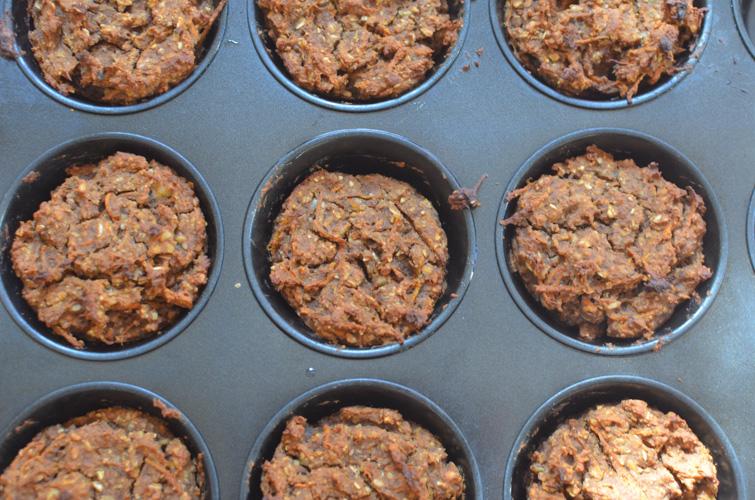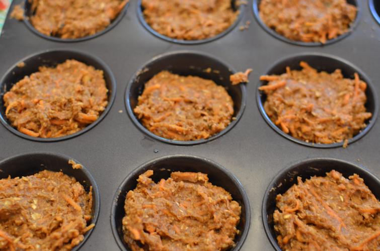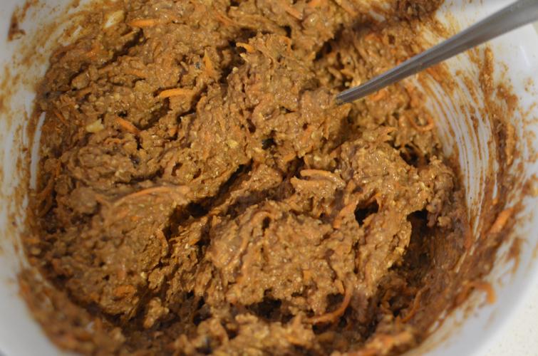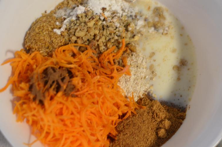 Poner la avena en una procesadora y procesar hasta que quede harina. Rallar las zanahorias y el jengibre. Picar las nueces.
