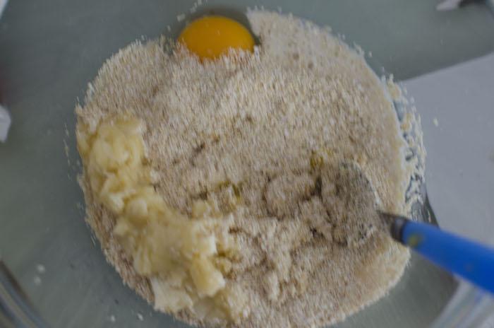 Con la ayuda de un tenedor, moler el plátano.