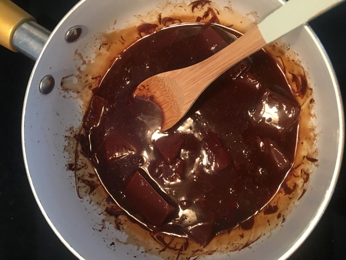 Agregar la barra de Chocolate y sin dejar de revolver esperar que se derrita.
