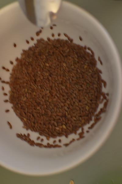 Pre calentar el horno. En un recipiente poner las dos cucharadas de linaza a remojar en 5 cucharadas de agua. Dejar reposar 10 minutos.