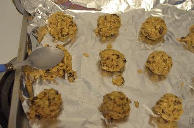 Armar bolitas con la masa y luego con la ayuda de una cuchara armar las galletas.