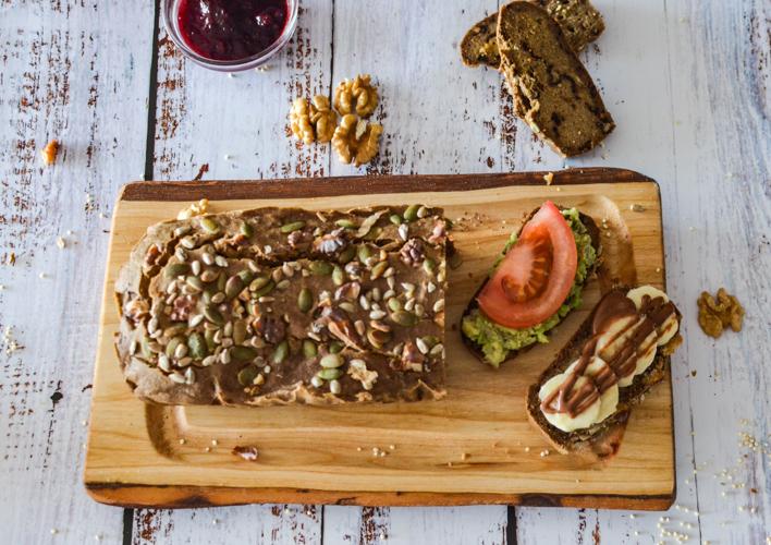 Este pan es una excelente opción de desayuno, pero también pueden cortarlo en rebanadas finitas, hornearlas y quedan como crostinis, tostadas crujientes ideales para disfrutar de un rico y sano aperitivo.