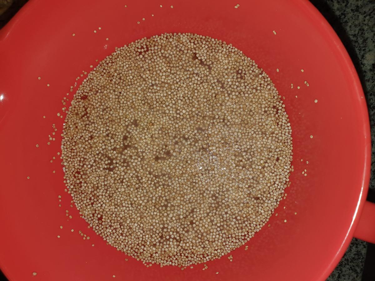 1.Poner la quinoa en un bowl y dejarla remojando en agua durante la noche.