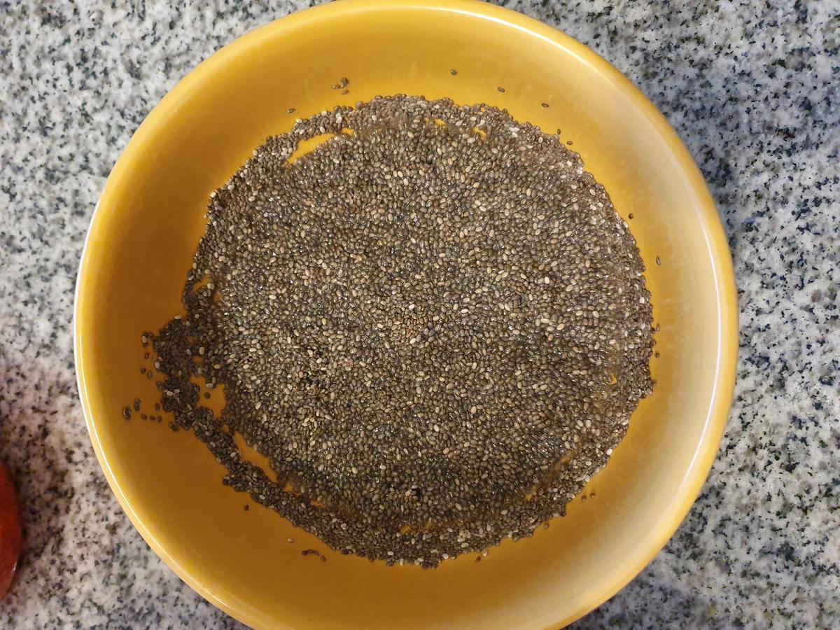 Poner la chia en 1/2 taza de agua y también dejar remojando durante la noche.