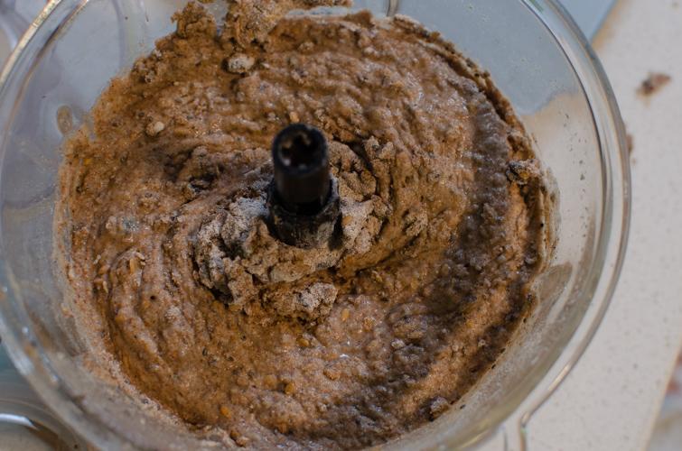 Mezclar el agua con miel y vinagre con los ingredientes secos y la chia remojada. Yo lo mezcle levemente en la procesadora y luego terminé de mezclar con un tenedor. Pueden mezclar con una buena batidora también.