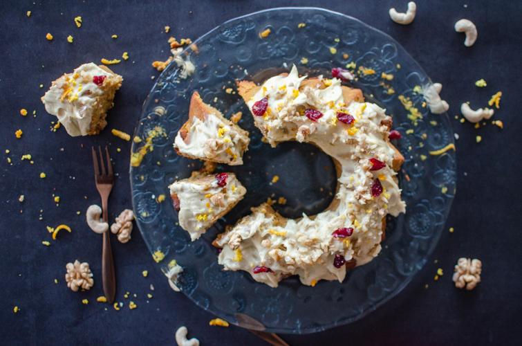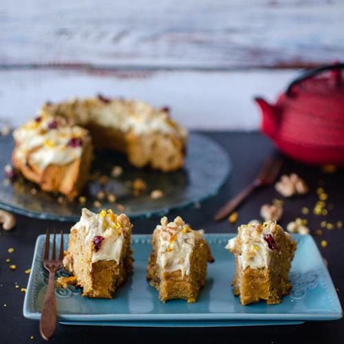 Para el frosting utilicé castañas de cajú remojadas y luego licuadas con jugo de naranja y jengibre. La verdad esta mezcla fue el complemento perfecto del queque!!! Es una crema muy simple de preparar y de verdad queda impactante y deliciosa! Encima de eso pueden decorar con lo que quieran.