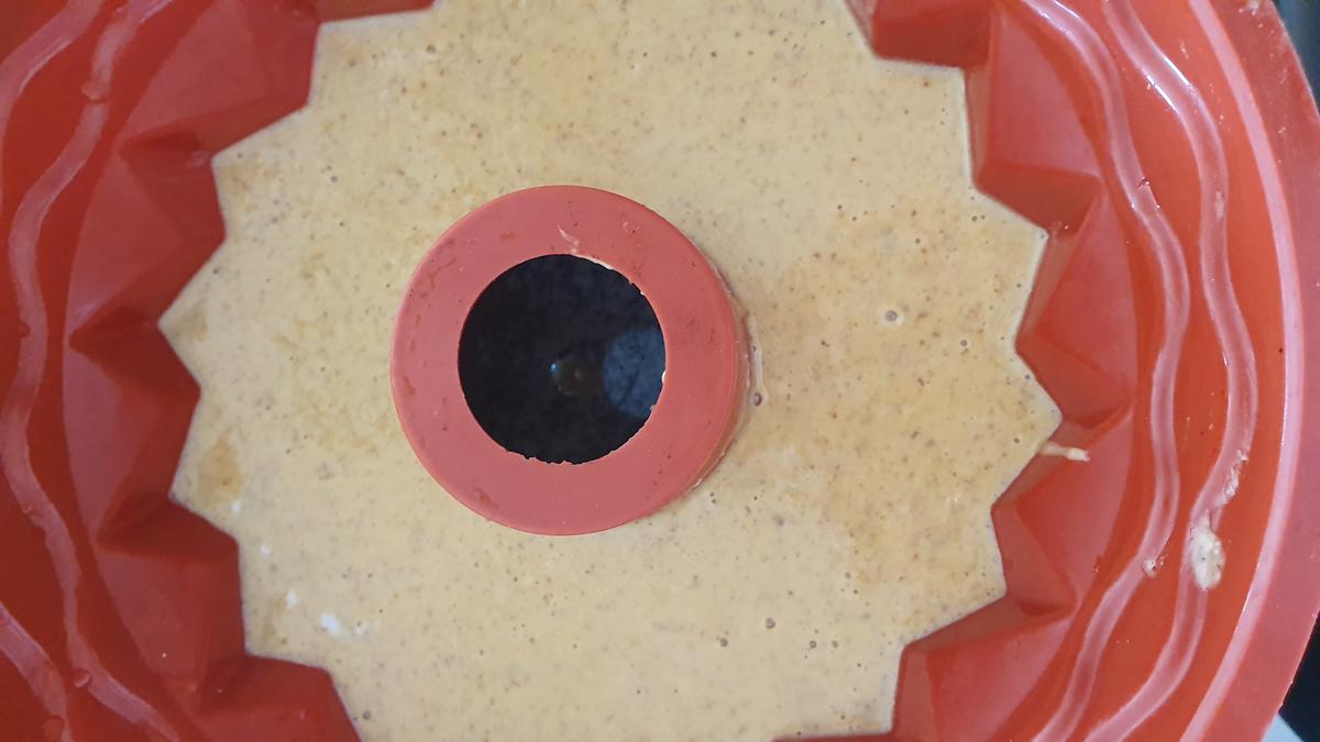 4. Vaciar la mezcla en el molde que van a usar (ideal de silicona). Esparcir un poquito de aceite en el molde.