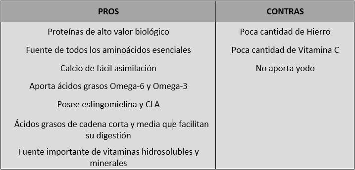 En contra: no tiene casi hierro y la cantidad de vitamina C se considera en trazas. Los quesos frescos no proporcionan yodo, sí lo hace la leche en su forma líquida.