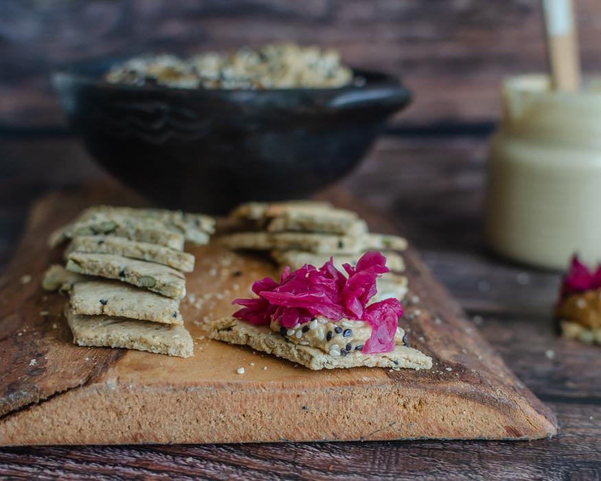 Les estaba debiendo esta Nutraliciosa receta de galletas tipo CRACKERS acompañadas de un increíble Hummus de Cebolla Caramelizada.