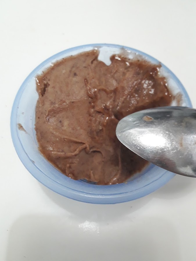 En cuanto al helado de chocolate, también necesitas plátano, al que simplemente tendrás que añadirle cacao en polvo desgrasado y sin azúcar. Como el plátano suele ser bastante dulce, el cacao no queda nada amargo y se asemeja claramente al helado de chocolate. ¡Está riquísimo!