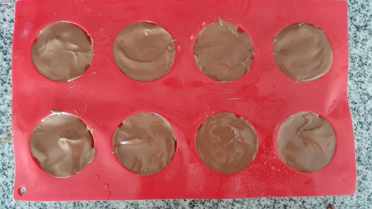 (Yo use otro tipo de moldes, por eso se ve distinto en la foto, pero lo más fácil es hacerlo en molde de muffins)