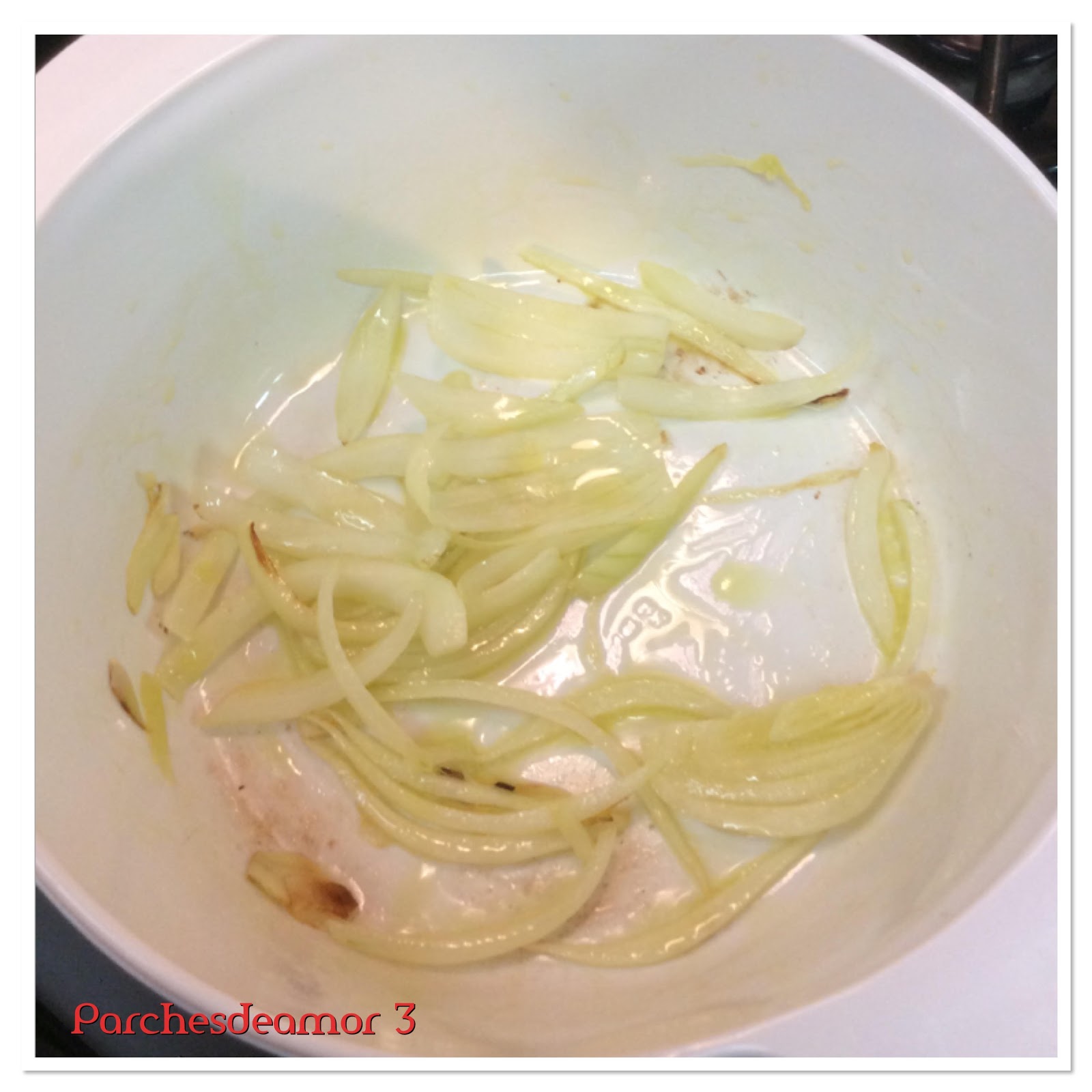 2-Poner una cacerola en mi caso de porcelana en el fuego con un chorrito de aceite de oliva y dejar a que caliente.