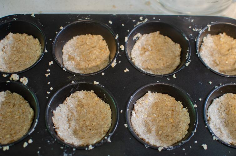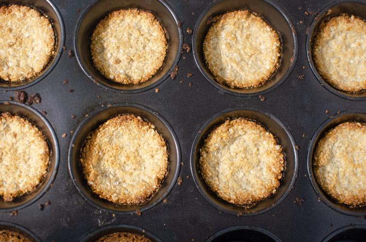 Una vez que la masa de avena este fría, agregar la mezcla de coco y limón sobre cada molde. Dejar refrigerando al menos 2 horas.