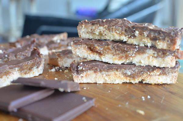 Creo que esta es una de las mejores recetas que he hecho, quedan unas barras de chocolates, con un caramelo delicioso y una galleta increíblemente crujiente.