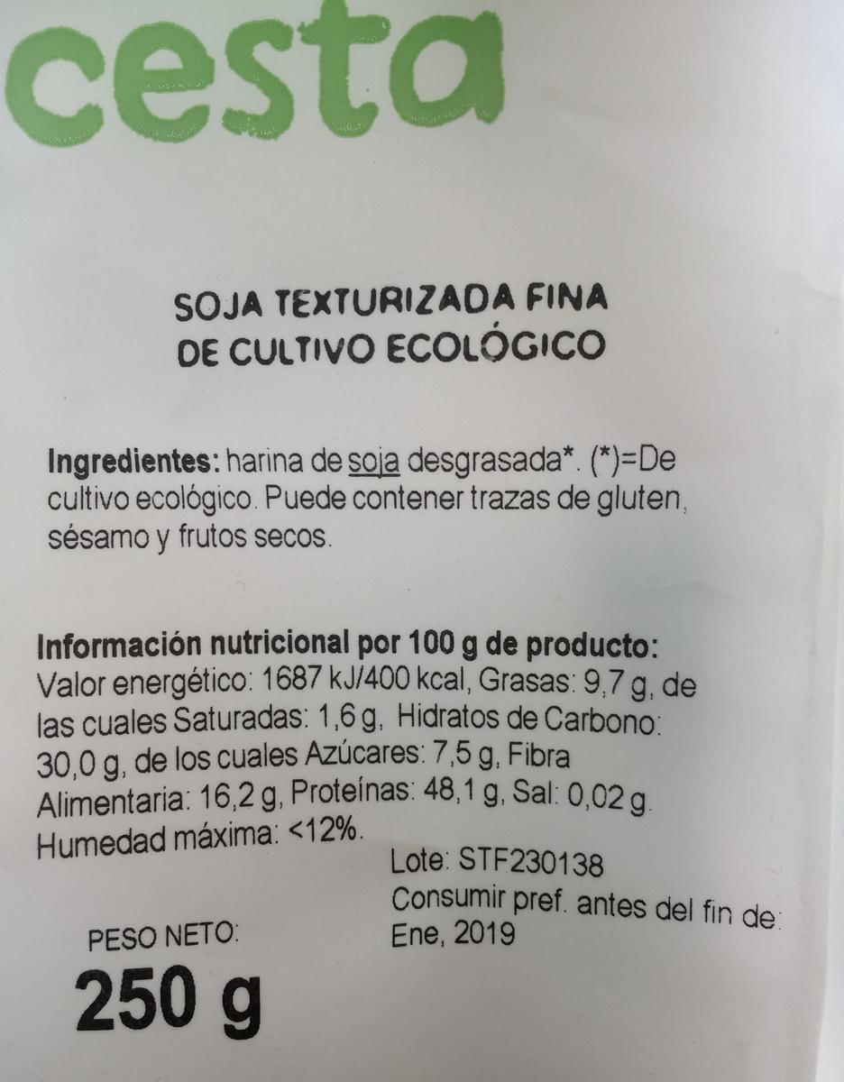 La soja texturizada, se obtiene mediante un proceso de texturización y deshidratación consiguiendo un producto completamente natural, que no contiene aditivos de ningún tipo. Estamos ante un producto procesado, sin embargo se trata de un “procesado saludable”, no contiene azúcares ni nada que lo convierta en perjudicial.
