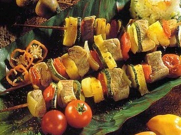 Por último, doramos en la plancha las verduras, volteando las brochetas con cuidado de no quemarnos pero sí teniendo en cuenta de que se doren parcialmente alrededor. Y voilá! Receta riquísima hecha, y directa al plato, la tomaremos caliente.