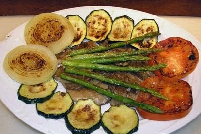 - Ahora el resto de verduras que tenemos, las rociaremos con un hilo de aceite de oliva y las pasaremos a la plancha. Podemos condimentar con sal gruesa, unas arenillas para dar sabor.