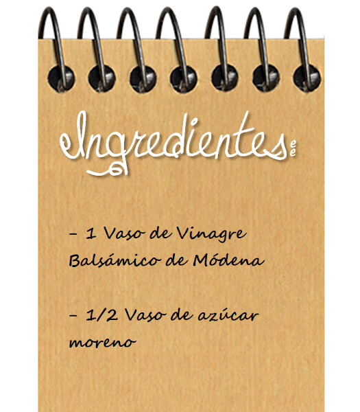 Ingredientes: Solamente se necesita el vinagre balsámico de Módena y azúcar o miel. Las cantidades orientativas son las que os he puesto, pero si no queréis tanto azúcar añadid menos, hasta el punto que más os guste. Personalmente de azúcar yo echo como un tercio del volumen de vinagre porque no quiero que quede muy dulce.