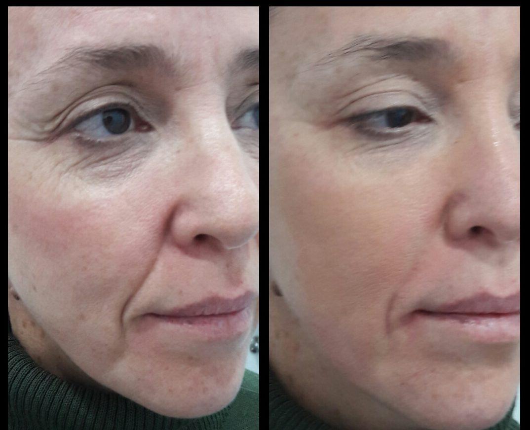 En este caso, la persona que se ha sometido al tratamiento pasaba por un momento malo en su vida, con falta de sueño, un adelgazamiento brusco y una situación de estrés acusada. Además de hacer ejercicio para dormir mejor, tratar de meditar y hacer yoga para evitar el estrés y empezar a alimentarse mejor, necesitaba un pequeño “rescate” que le devolviera la frescura de su rostro como aparecía antes de toda esta situación que venía prolongándose en el tiempo un año.