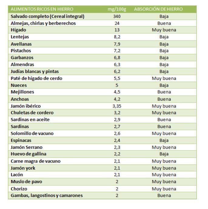 Ten en cuenta que aunque el alimento sea rico en hierro, no implica que se absorba por lo que guíate por la segunda columna.El mito de las lentejas