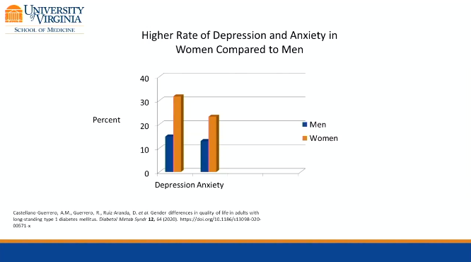 Por ejemplo, la siguiente imagen es un estudio español en el que se observan los datos reportados de mujeres y hombres respecto a las tasas de depresión y ANSIEDAD clínica (20% mujeres y 12% hombres reportaron casos de ansiedad)