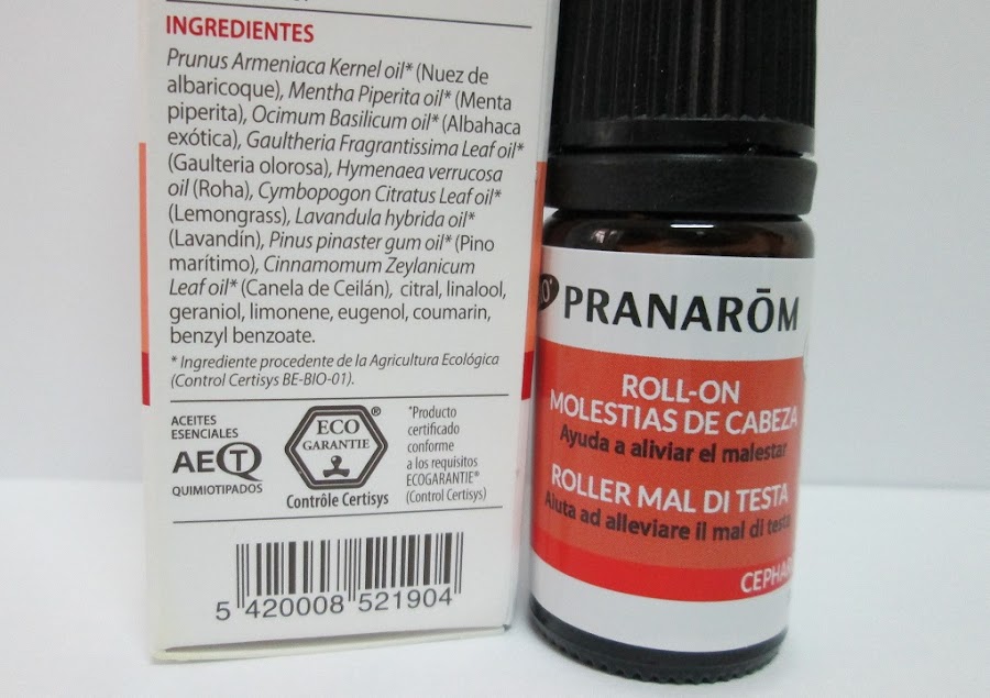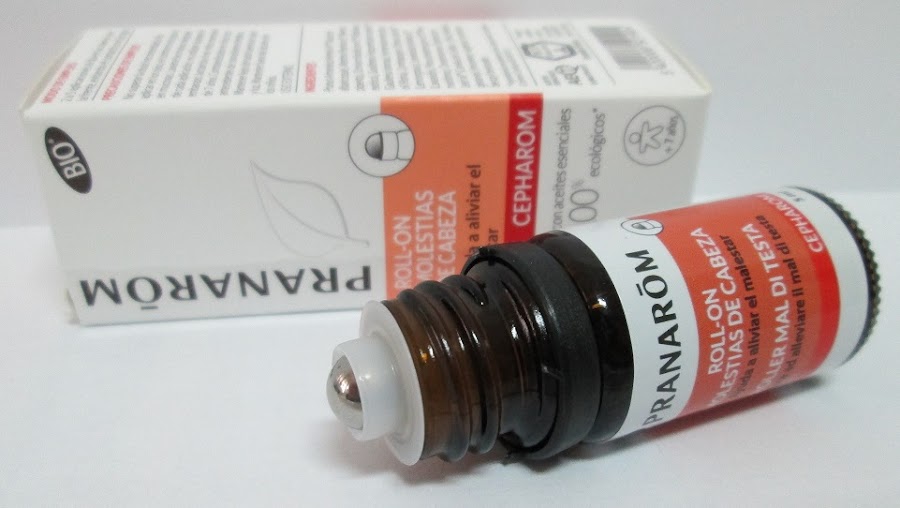 Este producto, en cuestión, se conoce como "Roll-On Molestias de Cabeza", de la linea "Cepharom", de la marca "Pranarôm". Cómo podéis ver, se presenta en un botecito de vidrio de color ámbar, que contiene 5 ml de cantidad, y que viene presentado en formato roll-on metálico, para que su aplicación sea mucho más cómoda y práctica.