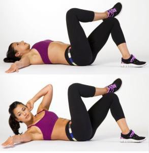 En este ejercicio deberás elevar las piernas y mantenerte acostado boca arriba. Luego subir intentando tocar tus tobillos haciendo presión en el abdomen y exhalando el aire para mayor contracción abdominal.Luego regresas a la posición inicial inhalando aire.