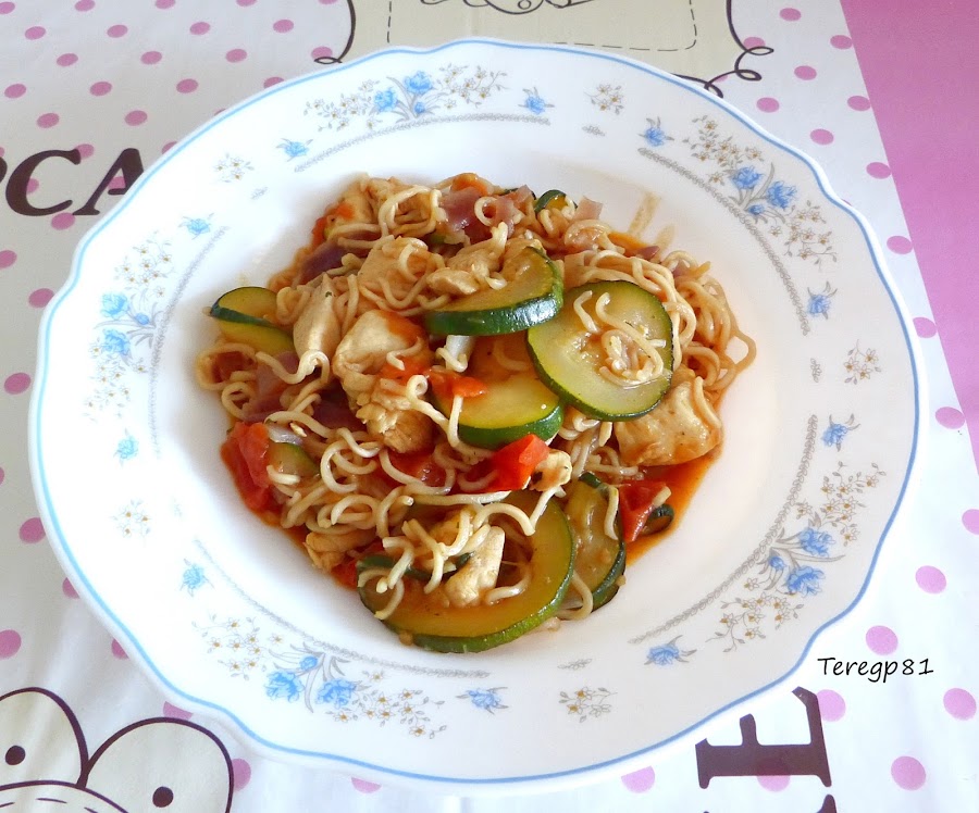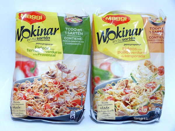 Venían 2 bolsitas de fideos que se cocinan en la sartén: una es con ternera y verduras a la provenzal y la otra con pollo y verduras de temporada. Cada bolsa incluye los fideos y el condimento, nosotros al cocinarlo debemos añadir las verduras y la carne/pollo: