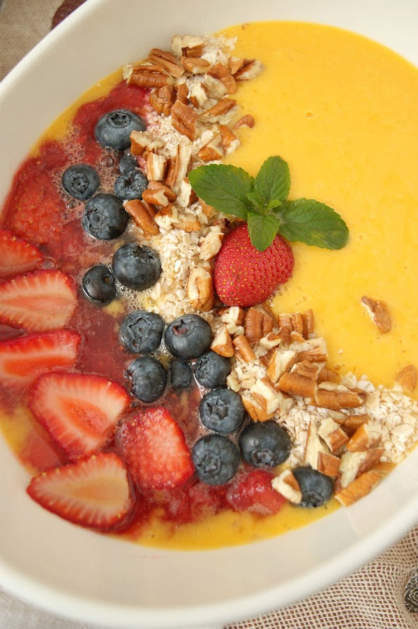STRAWBERRY, MANGO, AMAZONIAN AGUAJE SMOOTHIE BOWL, LETS GREET THE DAY WITH ENERGY